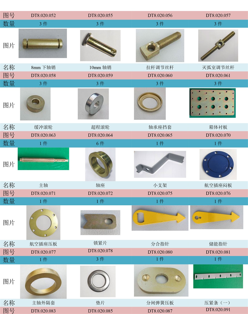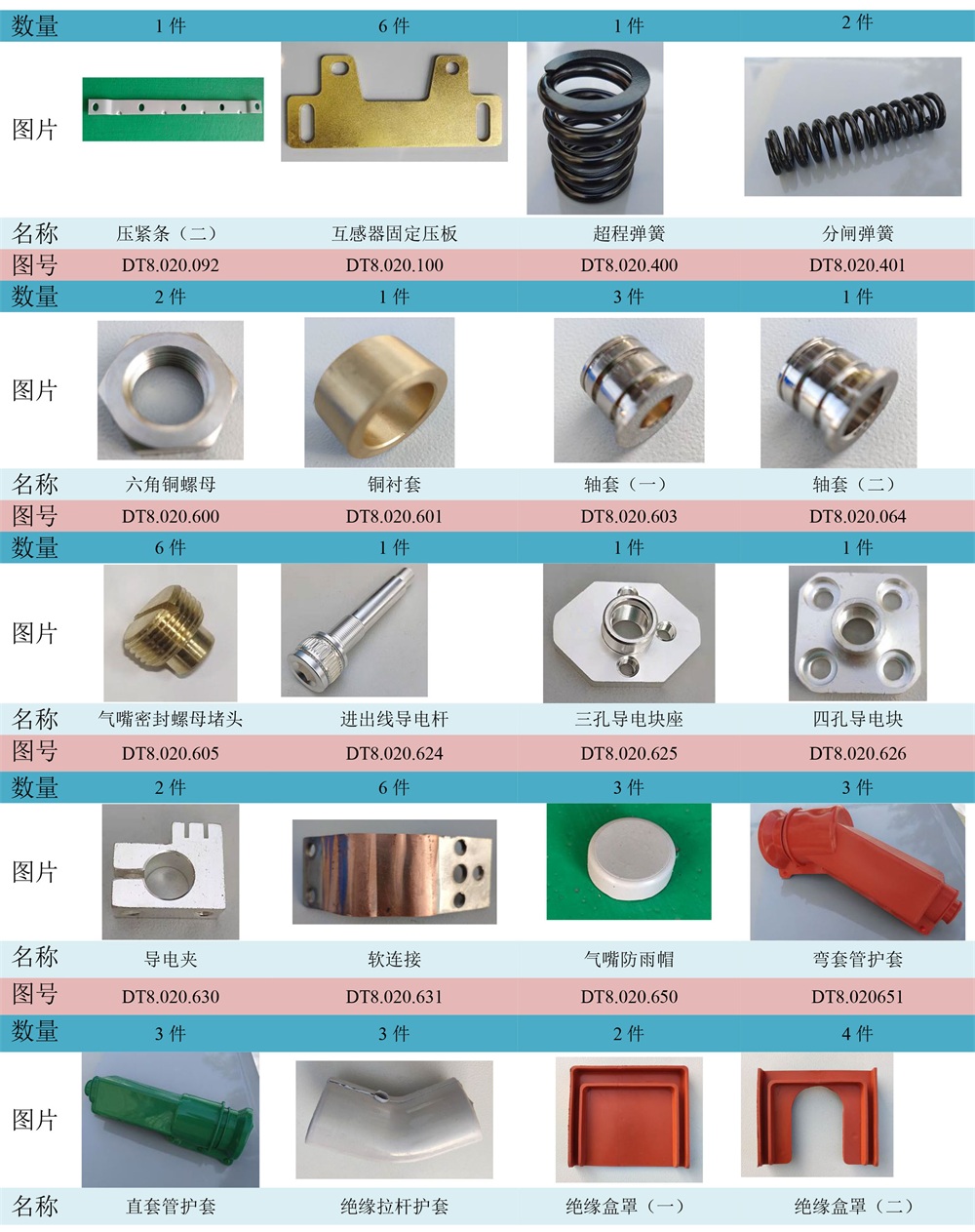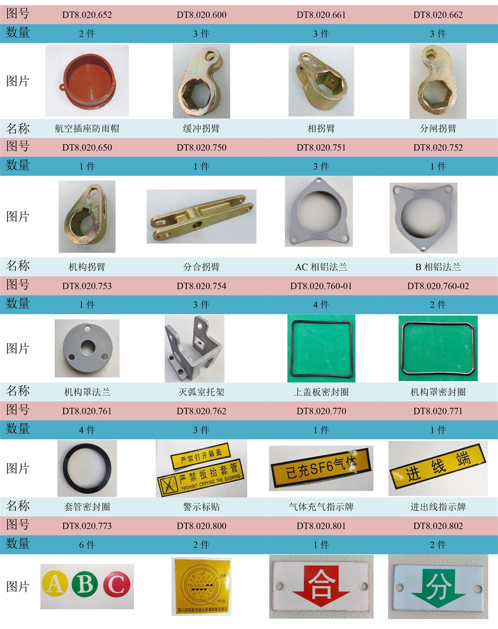 ZW20真空斷路器主要零部件清單